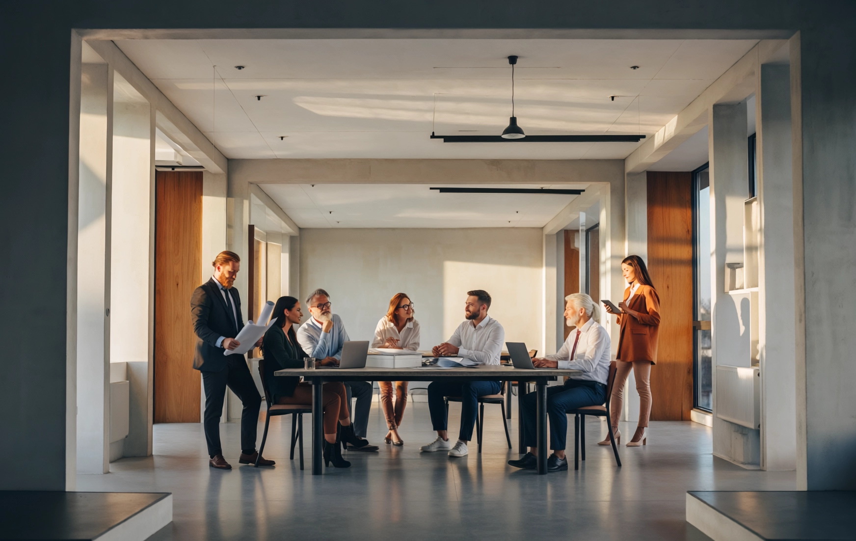 Nowoczesne biura coraz częściej powstają we współpracy interdyscyplinarnej: architekt, office manager, dział IT, HR, marketing, specjaliści od technologii AV, mebli czy przestrzeni zielonych.